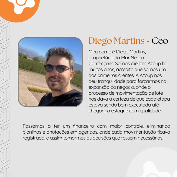 Nada gera mais confiança do que ouvir quem passa pelos mesmos desafios do dia a dia da confecção. Abaixo, você pode ver depoimentos de donos e donas de confecção que também viviam com falta de controle e hoje trabalham com mais organização e tranquilidade usando a Azoup.
